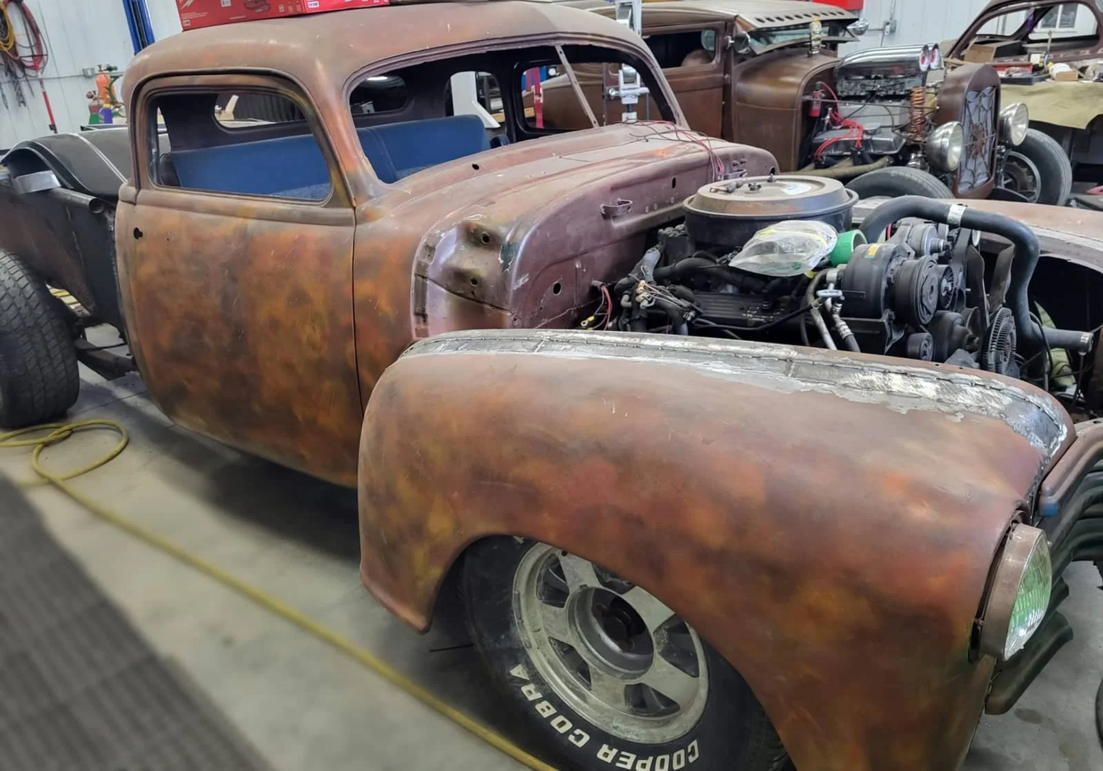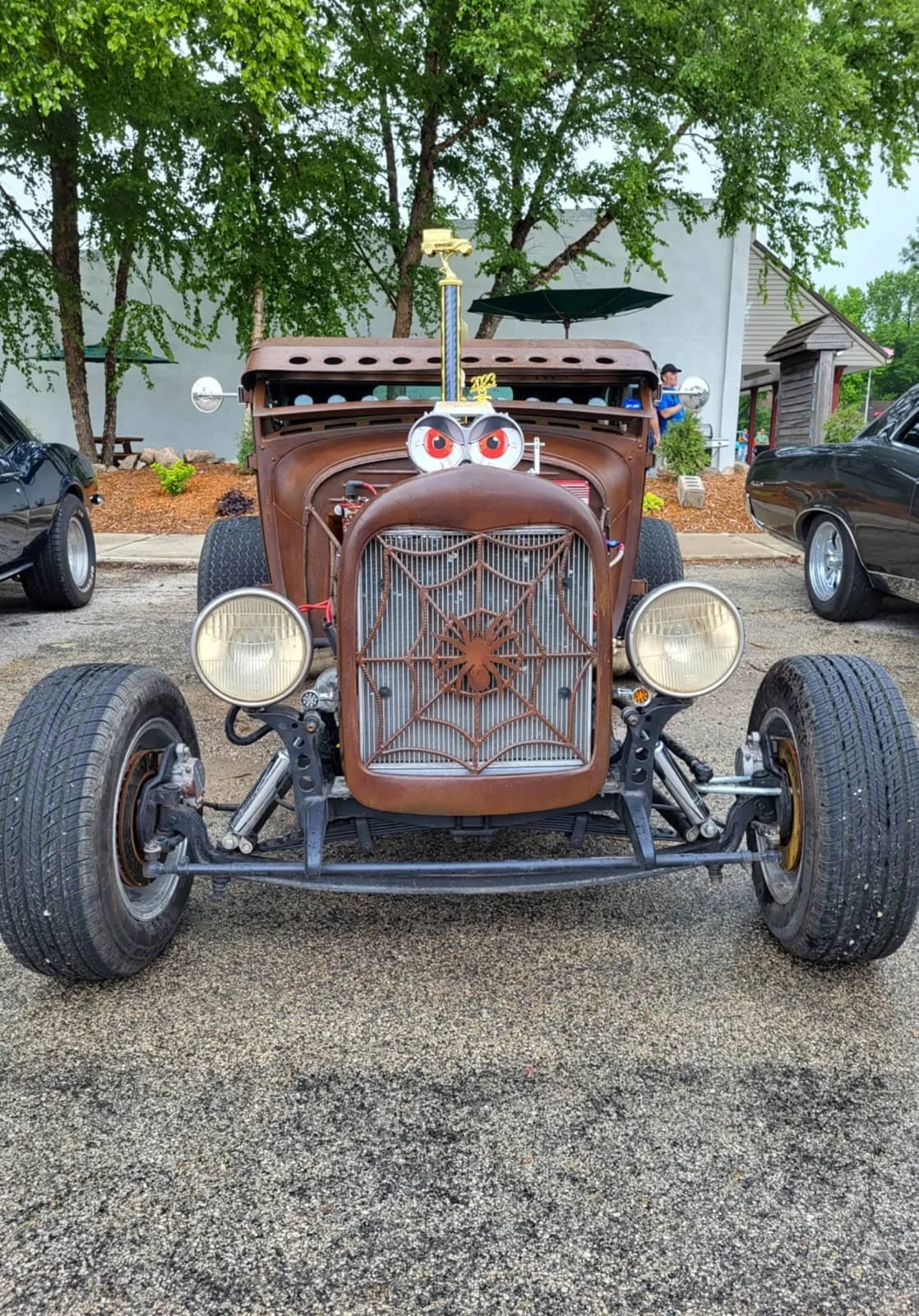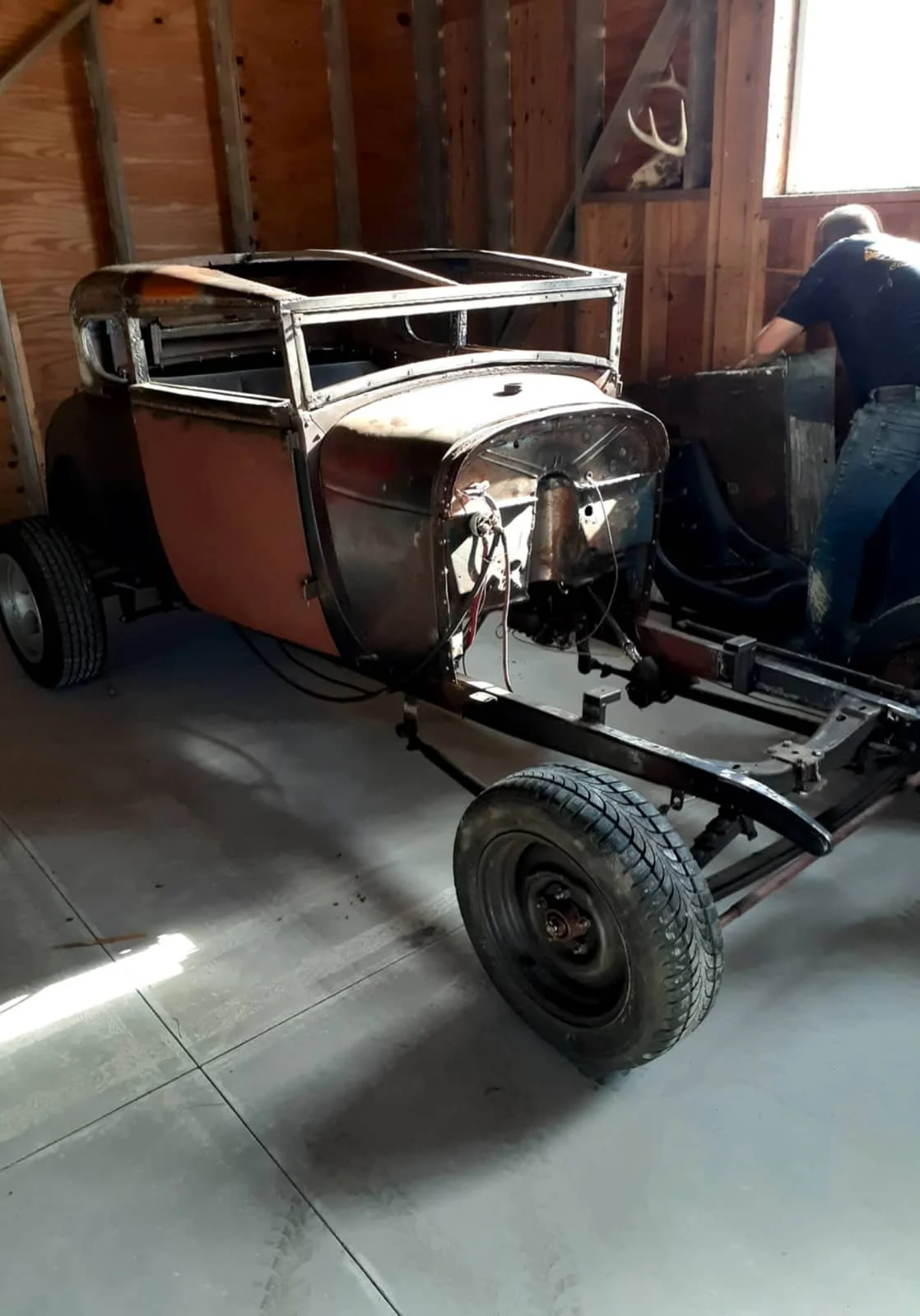 This is where it all began! Old School is a 1929 Model A coupe. Old School was in process when we acquired this car. It has an aggressive chop, big tires, and a big motor, with a patina paint job. This is one of our most current builds. Its first car show took a first place trophy and is continuing to turn heads. Old school continues to win awards everywhere it goes. Old Shool is definitely an eye catcher and a head turner.
